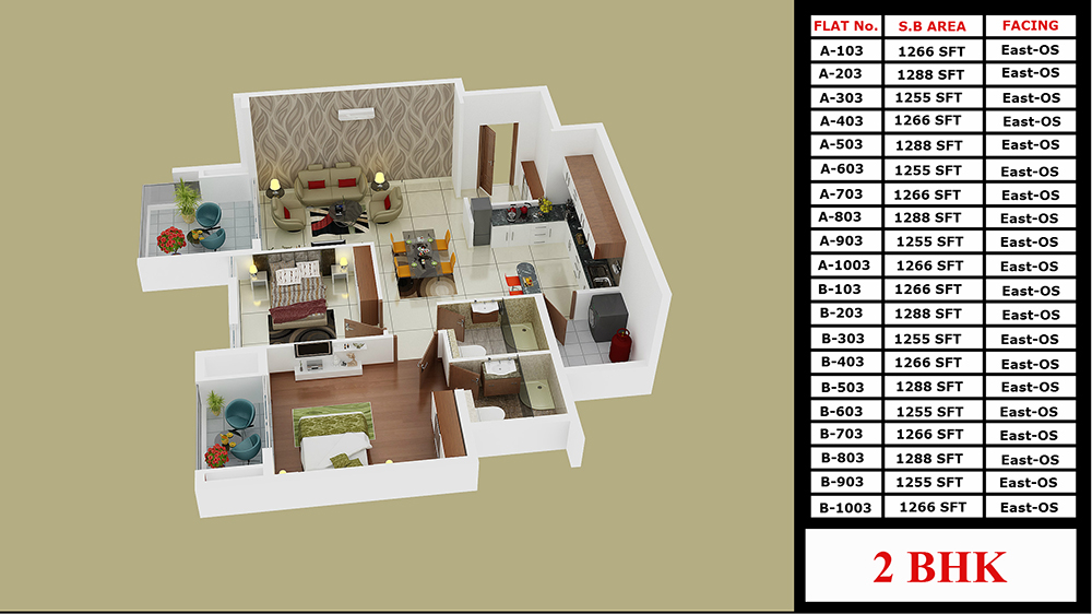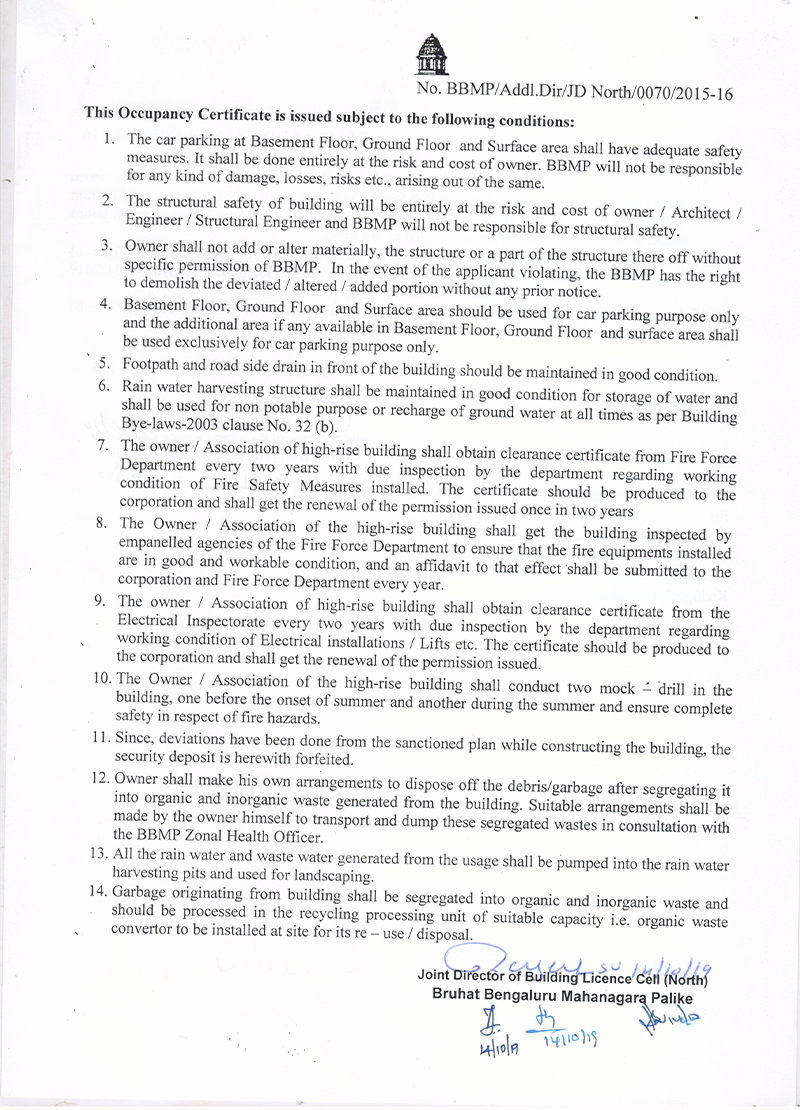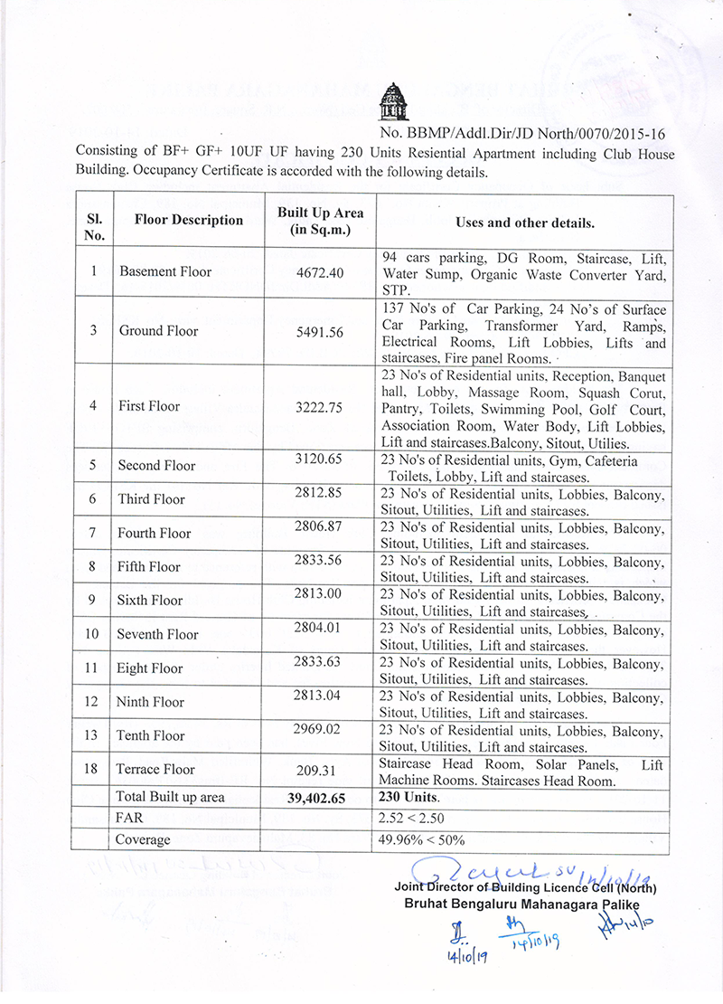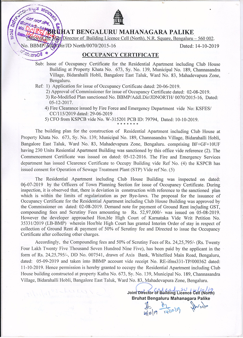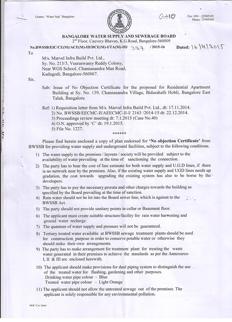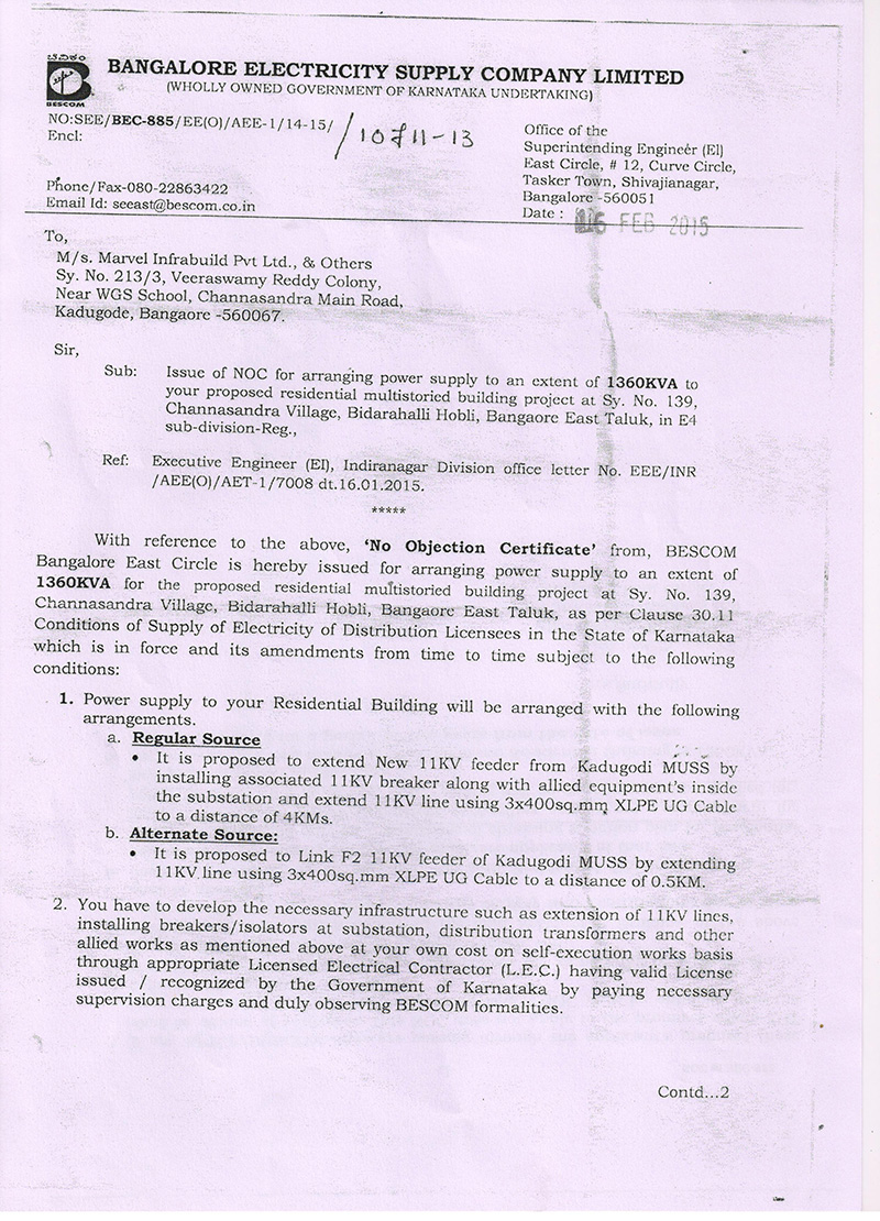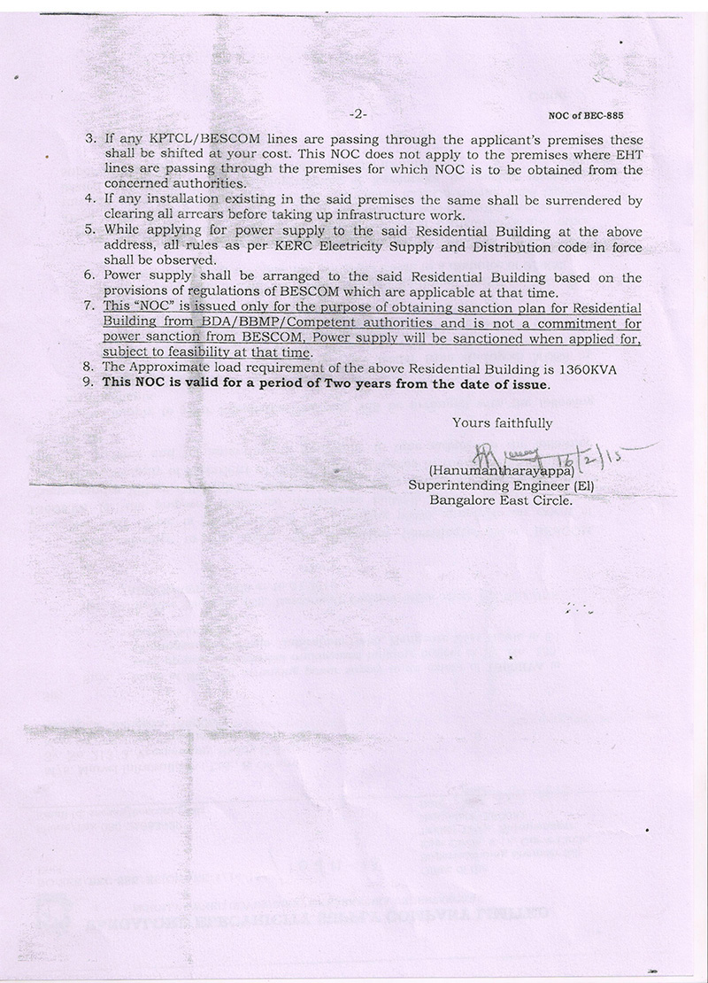 BESCOM power supply : 2 & 2.5BHK – 3KVA and 3BHK – 4KVA