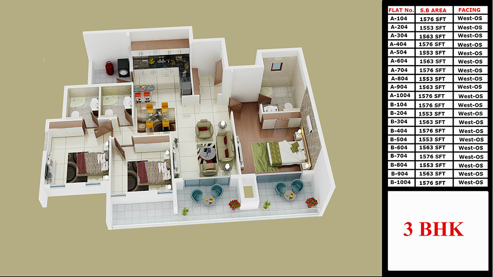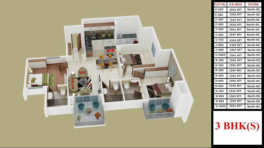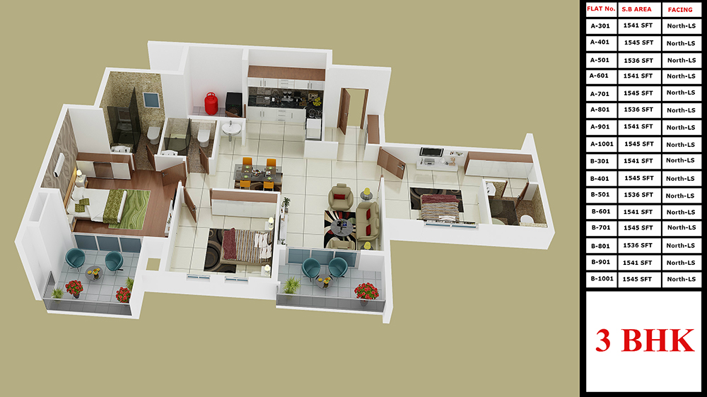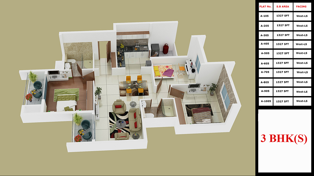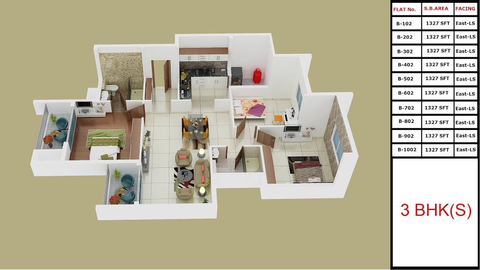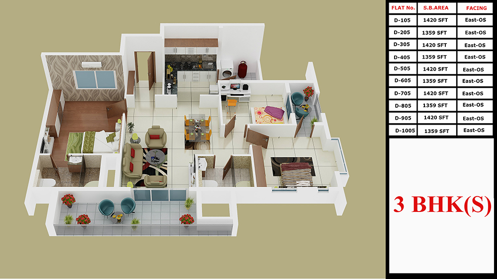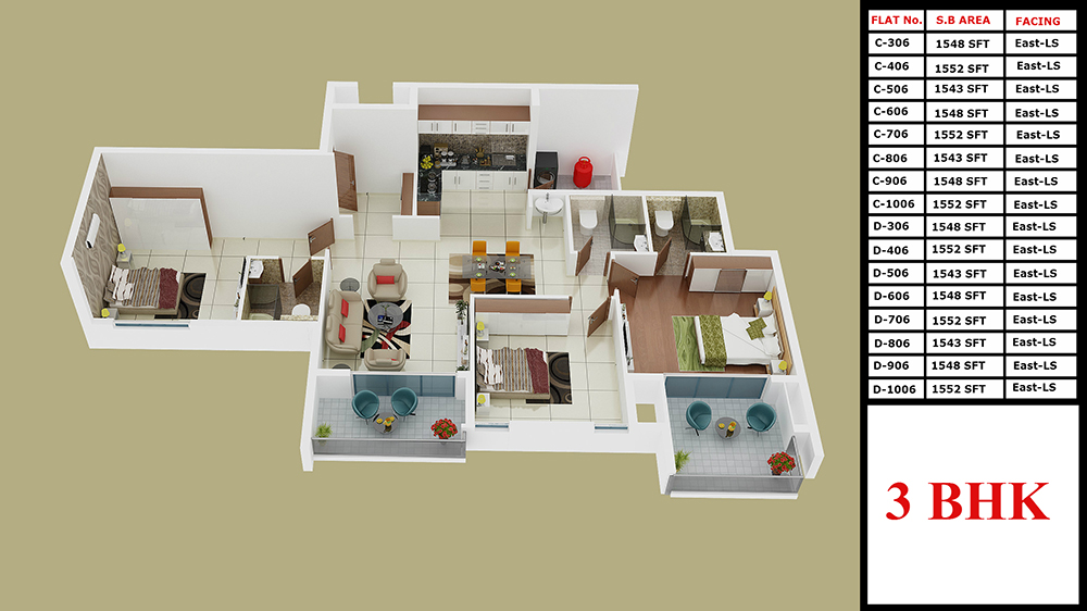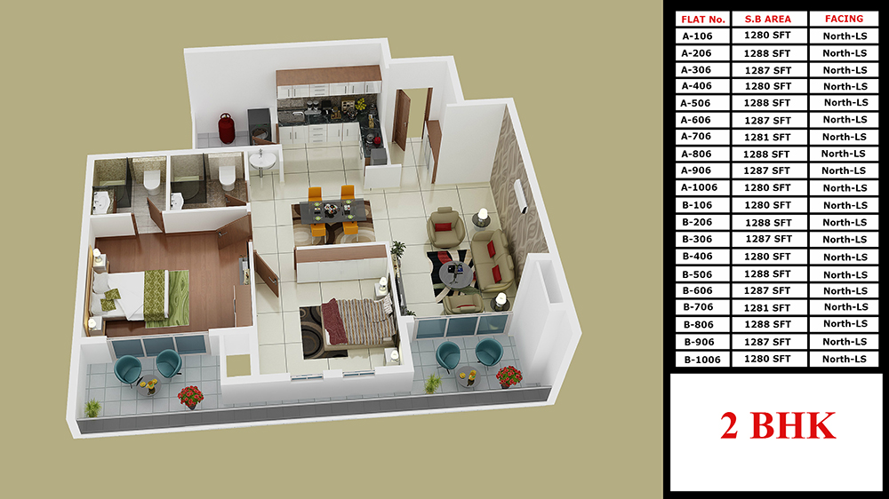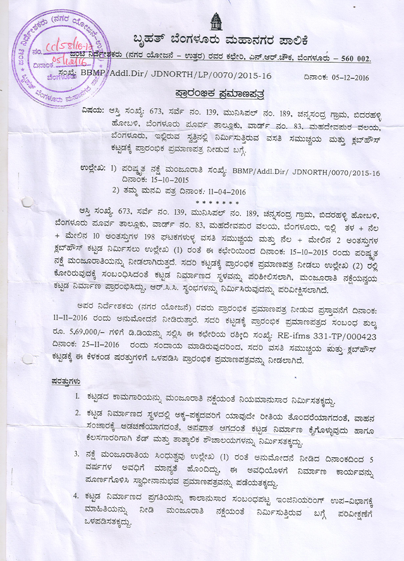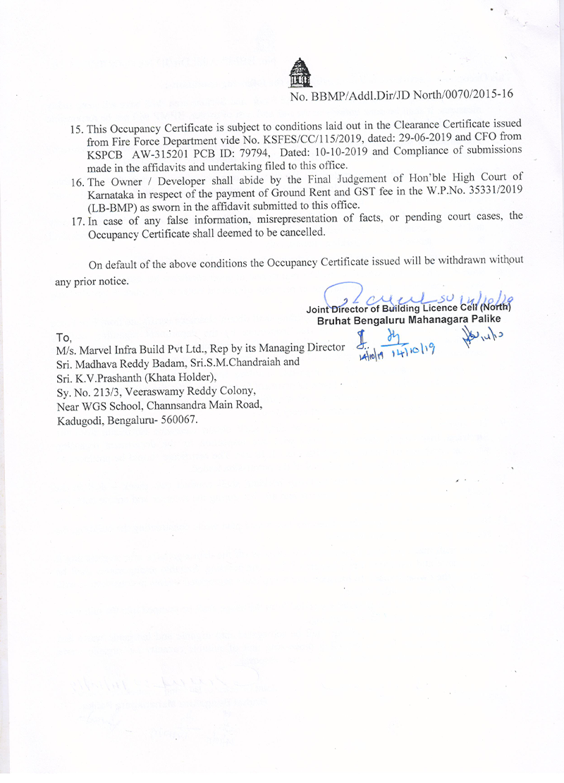 BESCOM power supply : 2 & 2.5BHK – 3KVA and 3BHK – 4KVA