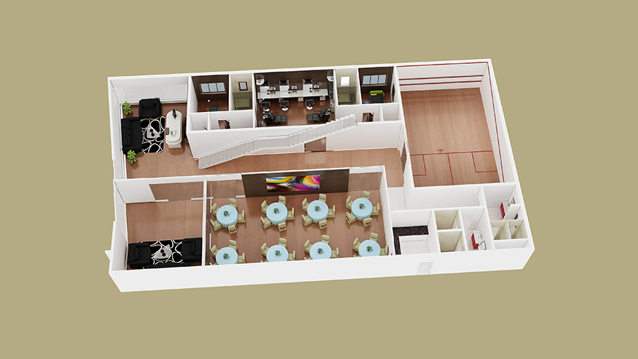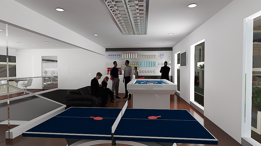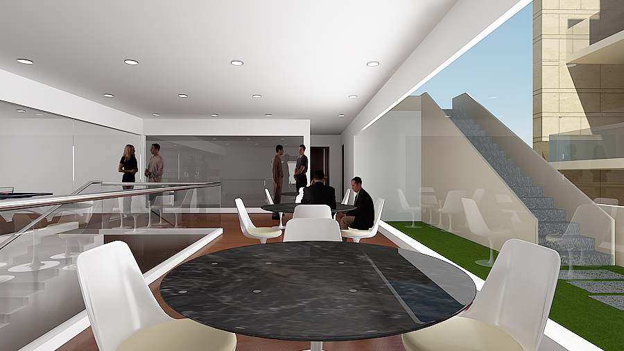- Grand Center Atrium with beautiful landscaping and cheerful water body